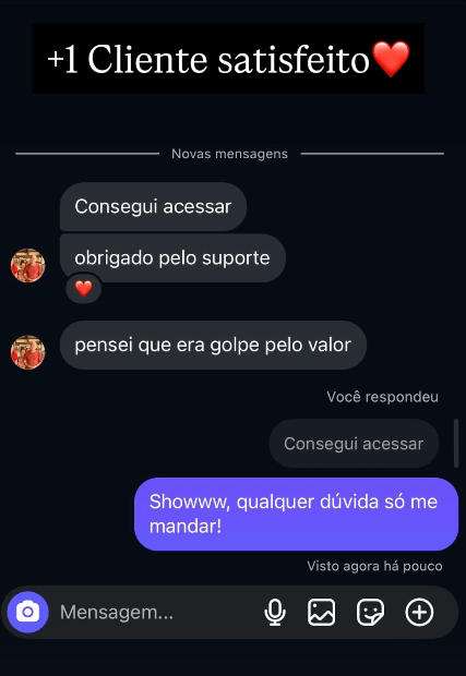 Se não ficar satisfeito, é só mandar uma mensagem que devolvemos todo o seu dinheiro, sem burocracia.